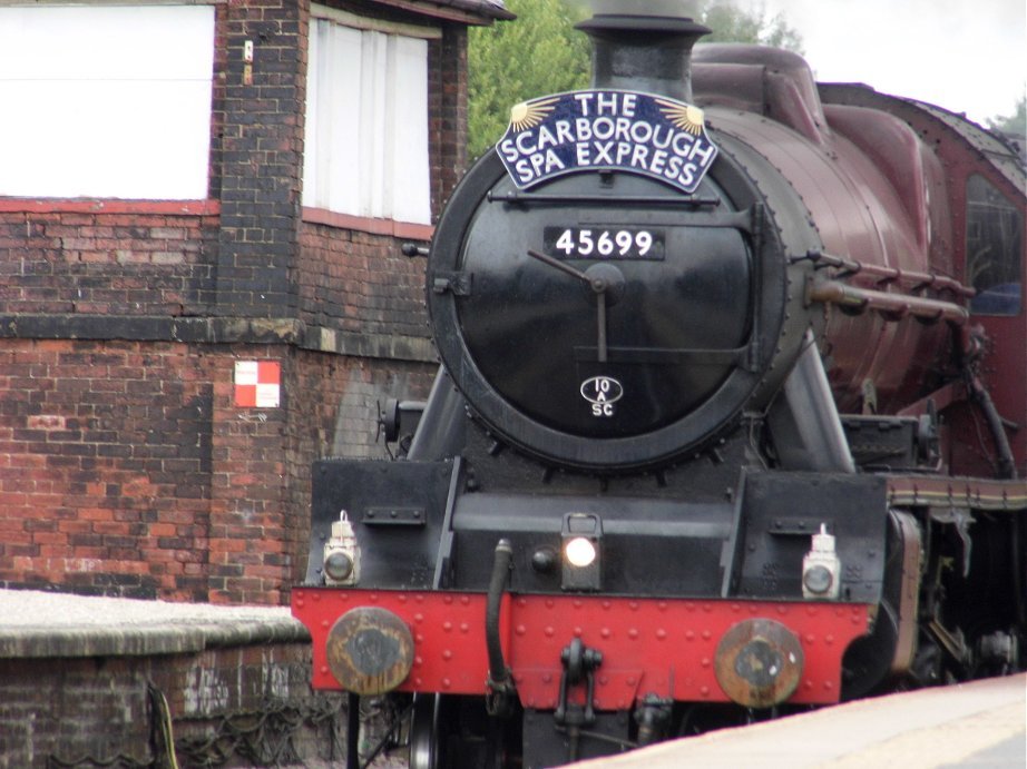 ex-Sheffield Millhouses Jubilee 45699 Galatea hauling the Scarborough Spa Express at Castleford station on Wednesday July 24th 2013.